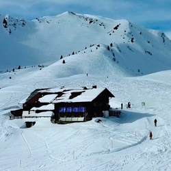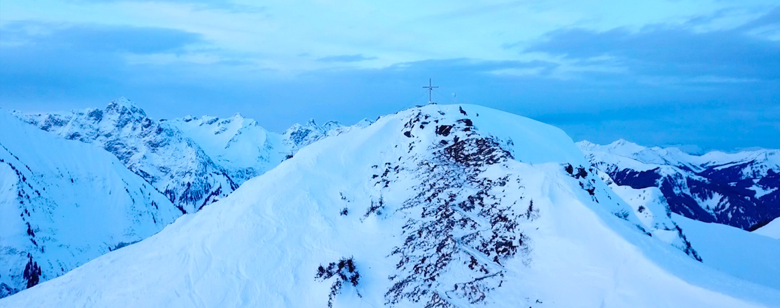 Steinmandl im Kleinwalsertal, 1981 HM - Als eine der wenigen Hütten ist die Schwarzwasserhütte auch im Winter bewirtschaftet und bietet die Möglichkeit zur Übernachtung. Ideal, um eine Skitour oder Bergtour zur „blauen Stunde“ auf das Steinmandl zu unternehmen.