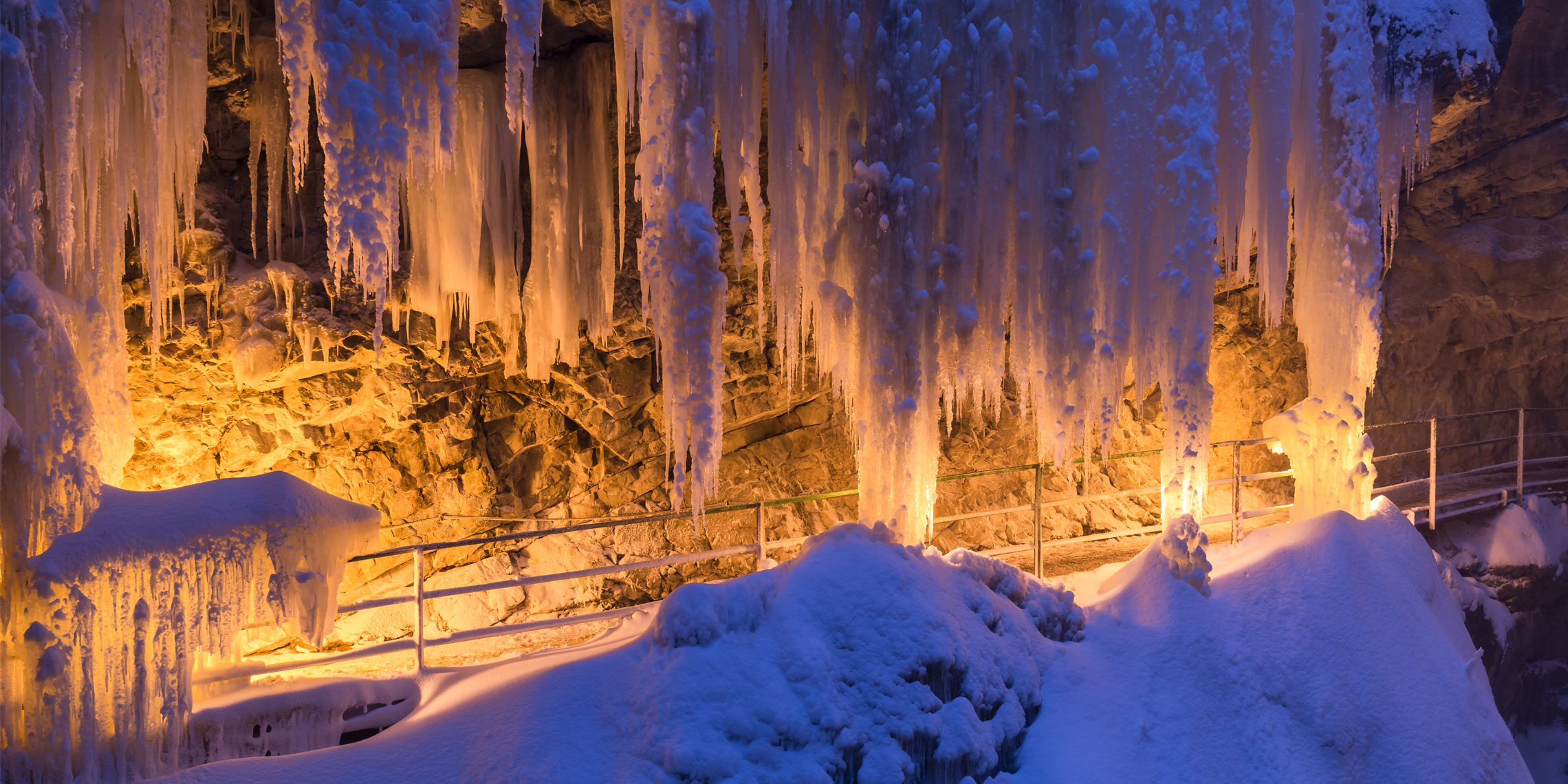 Wo im Sommer der Wildbach rauscht, ist es im Winter mehr als nur ganz leise. Bizarre Eisformen und Sonnenspiegelungen verwandeln die Breitachklamm in eine wundervolle Eiswelt. Noch mystischer zeigt sich die Breitachklamm bei einer Fackelwanderung, wenn der Schnee ringsum im Schein der Fackeln glänzt, können Sie eine ganz besondere Atmosphäre genießen.